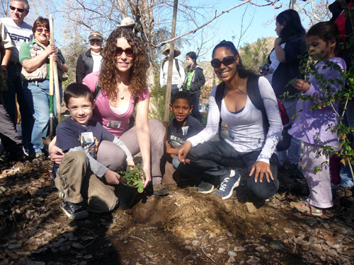 SAN DIEGO – On a perfect, sunny Sunday, a day after the rainstorms, Jewish single parents and their children got a five-day head start on Tu B’Shevat by planting three blue elderberry bushes near the Visitor Center at Mission Trails Regional Park.