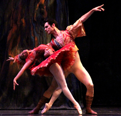 “The Firebird” usually alternates between Stravinsky’s blazing score for the Firebird and the Monsters with the lullaby music for the Princesses. Wistrich cut a bit here, changed a bit there and thus the ballet clicked together. Dancing “Firebird” Erica Alvarado, new to the Company, displayed a rock sure technique and an understanding of the role. She is a petite lady who easily fills her space but must now fill the stage – she has to possess it. Size is no barrier – many, many of those tiny (by modern standards) famous Russian prima ballerinas filled that huge Bolshoi stage. I have always prized the advice that Frederick Ashton gave to Margot Fonteyn: “linger a while.” When Alvarado snaps into a confident – beautiful – arabesque just before exiting – hold it a moment