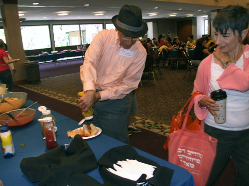 Rabbi Leonard Rosenthal and wife Judy check out the food during Member Appreciation Day at Tifereth Israel Synagogue (Photo: Nancy Harrison)