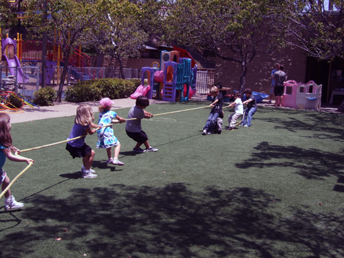 Youngsters engage in a tug-of-war at Tifereth Israel Synagogue (Photo: Donald H. Harrison)