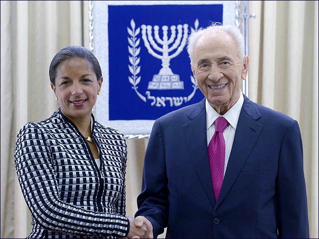 JERUSALEM (Press Release) — President Shimon Peres held a diplomatic working meeting on Wednesday, May, with US National Security Advisor Susan Rice at the President’s Residence. They discussed the major issues on the agenda today including the diplomatic situation between Israel and the Palestinians, the Iranian negotiations and the strategic relations between Israel and the US.