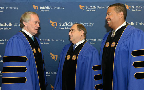 U.S. Senator Edward Markey, National Director of the Anti-Defamation League (ADL), Abraham Foxman and Tribal Council Chairman of the Mashpee Wampanoag Tribe, Cedric Cromwell, were among those receiving honorary degrees from the Suffolk University Law School on Saturday, May 17