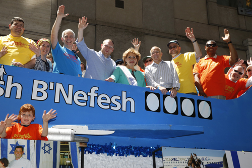 Among dignitaries riding on the Nefesh B’Nefesh float were Israel’s Minister of Aliyah and Immigrant Absorption, MK Sofa Landver, Nefesh B’Nefesh Co-Founder and Executive Director Rabbi Yehoshua Fass and Nefesh B’Nefesh Co-Founder and Chairman Tony Gelbart.