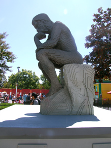 Robots fire our imaginations, and Lego blocks prompt within us desires to build amazing creations. Here children, and maybe even adults, can imagine themselves as scientists, inventors, engineers, and creators. Another sculpture in the park, modeled after “The Thinker” by Auguste Rodin, also celebrates the possibilities of the mind–perhaps one’s future lies in being a philosopher, a sociologist, a writer, or a teacher!