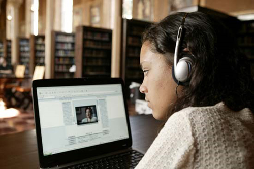 Student with video testimony (Photo: USC Shoah Foundation)