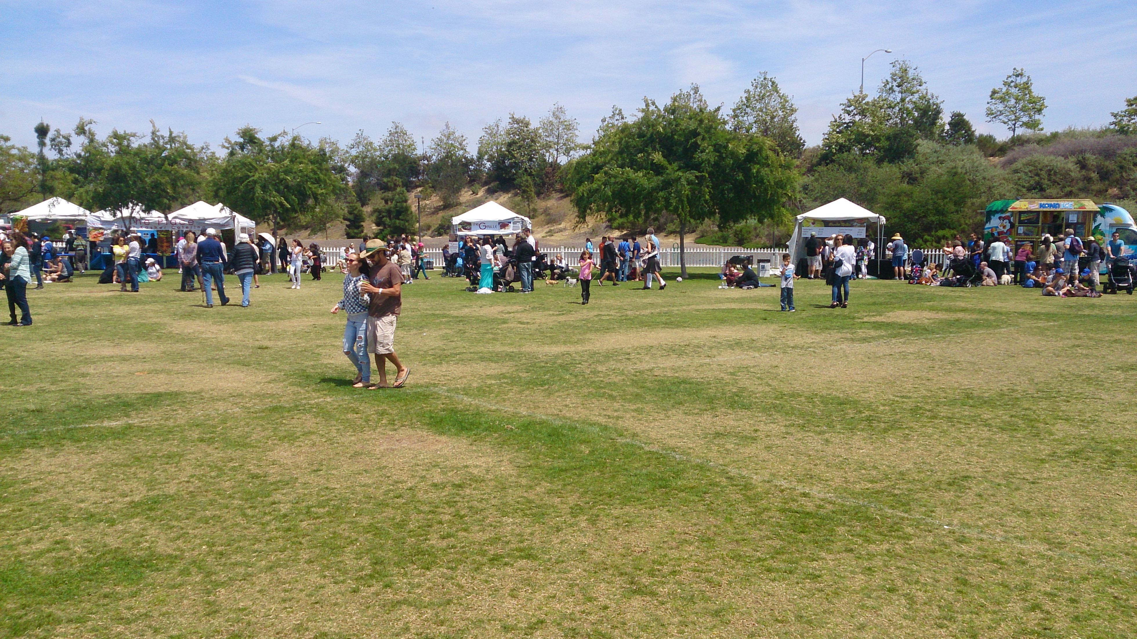 Amongst the spacious Nobel Field in the University City neighborhood of San Diego, there were expanses of open field large enough for multiple soccer games or for throwing a football without fear of hitting someone with an errant throw.  The mood was pleasant and controlled, rather than exuberant.