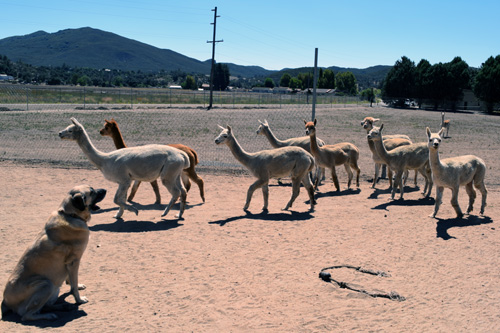 Venessa is one of 65 alpacas at the Kabbai ranch, some of them owned by a friend who also is in the alpaca business. Alyeshmeni’s man “who cares for animals” also owns 11 chickens, one rooster, two female cats, and two Anatolian Shepherds, the latter being very large guardian dogs that protect the alpacas against such backcountry predators as mountain lions, bobcats and coyotes.