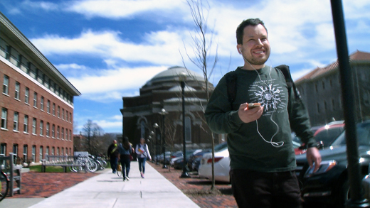 Micah, a star of ‘Intelligent Lives,’ walking to class at Syracuse University