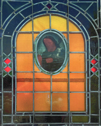 Stained glass window preserved by Martin Gang (Plaque in his honor out of view)