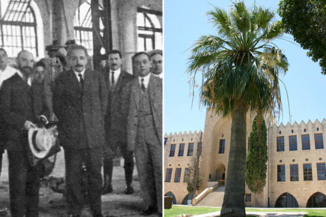 In Haifa, Technion reports that a palm tree planted by Albert Einstein in 1923 in front of the main building on campus is still standing and thriving. The institution sent these photos of Einstein at Technion in 1923 and of the palm tree today.