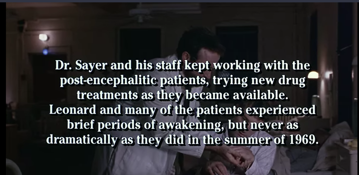 The epilogue of the film Awakenings, based on the book by the same name written by Dr. Oliver Sacks, in effect erases the history of Dr. Sacks, his name, and replacing it with a fictional Dr. Sayer.