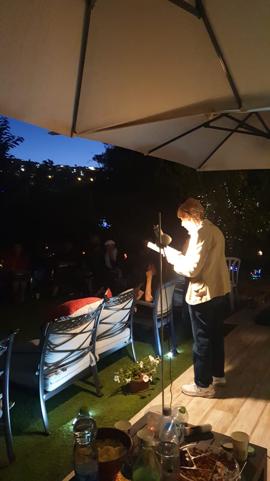Easier said than done, and my travails in attaining that objective are still under way. But the subject of this blog post is the event that marked my entry into live IAWE events. It was advertised as “A Celebration in the Garden,” and was due to be held in the Jerusalem garden of one of our fellow-members. The evening program would give members the opportunity to read from work that had appeared since coronavirus began.