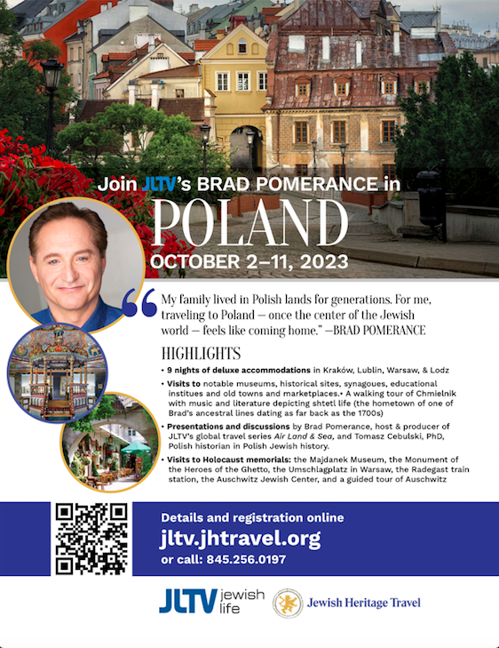 Brad invites you to join him on this trip to Poland, which will surely be both enjoyable and impactful.  For more information, visit Jewish Heritage Travel in Poland – http://jltv.jhtravel.org or email brad@jltv.tv.