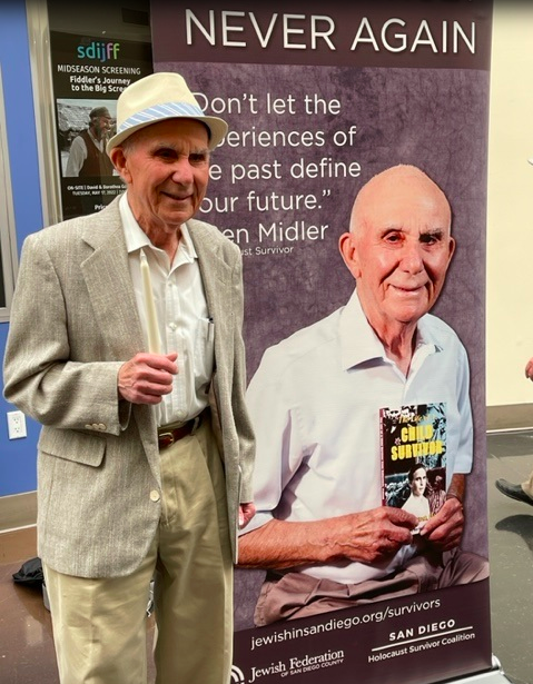 Midler was born in Bialystok, Poland, in 1928 and was the only surviving family member of his family who remained in Poland during the war. After living in a ghetto for two years, he was taken to six concentration camps between the ages of 15 to 17 and survived because he was able to work at these camps. Midler later came to Israel (then Palestine) and fought in the Palmach’s “Harel” Unit, in the battle to free Jerusalem in 1948 during the War of Independence. He is the author of The Life of A Child Survivor from Bialystok, Poland, a biography of a 13-year-old boy which tells from a child survivor’s perspective how he escaped concentration camps, executions squads, and the gas chambers. He wrote the book in his 80s to provide a living history. A resident of San Diego since 1984, Midler and his wife, Esther, have three daughters, six grandchildren and two great grandchildren.