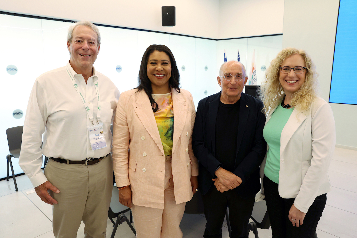 (Left to right) Chair of the San Francisco-Haifa Sister City Committee Bob Tandler, San Francisco Mayor London Breed, University of Haifa President Prof. Ron Robin and Academic Head International School at the University Dr. Adar Ben-Eliyahu. (Credit: Yaniv Kopel)