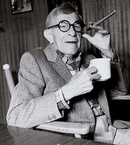 George Burns (January 20, 1896-March 9, 1996) was born as Nathan Birnbaum to Eliezer Birnbaum and his wife Hadassah Bluth. Eliezer, a coat presser and cantor at the local synagogue, came from Ropczyce, Poland. Burns sang harmony with other elementary school-aged students in the Pee-Wee Quartet. He picked the stage name George Burns to guard against antisemitism. His first wife was a dance partner Hannah Sigel, who danced under the stage name Hermosa Jose. The marriage lased only 26 weeks. In 1926, he married Gracie Allen, who was Catholic, and subsequently appeared with her in comic short films which had such stars as Bing Crosby, W.C. Fields, Jack Benny, Frest Astaire, Joan Fontaine, Bob Hope, Martha Raye, Eleanor Powell, and Robert Young.