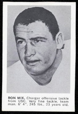 Mix was praised by his coach Sid Gillman as he “best offensive lineman I’ve ever seen” and over 10 years of play, he was called for only two holding penalties. After the Chargers moved to San Diego, Mix was instrumental in the team winning the 1963 American Football League championship. In 1965, he joined Black athletes in boycotting New Orleans because of its discriminatory practices, saying if the Black players wouldn’t play neither would he. Other White players followed Mix’s lead and the AFL All Start game was moved to Houston.