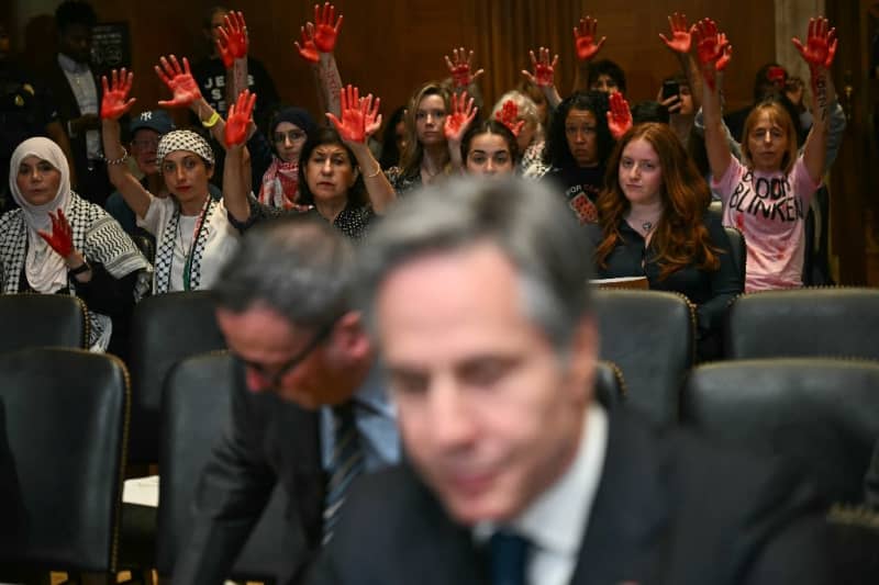 Washington (AFP) – US Secretary of State Antony Blinken said Tuesday that a Gaza ceasefire deal was still possible but he charged that an International Criminal Court arrest bid for Israeli leaders was setting back diplomatic efforts. Testifying before Congress, Blinken was repeatedly disrupted by protesters critical of US support for Israel. Several were evicted after shouting that he was a “war criminal,” but protesters — many showing symbolically reddened hands –were later allowed to sit silently behind him. Blinken credited Qatar and Egypt with assisting the “extensive effort” to secure …