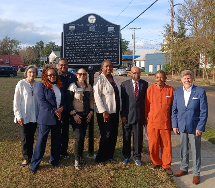JASHP and The Natchez Museum of African American History and Culture formed a shiddach – a partnership. The first-ever interpretive Rosenwald marker in Adams County was created, sited, and dedicated adjacent to the Natchez School Board on November 20, 2025. Bobby had secured the perfect spot.